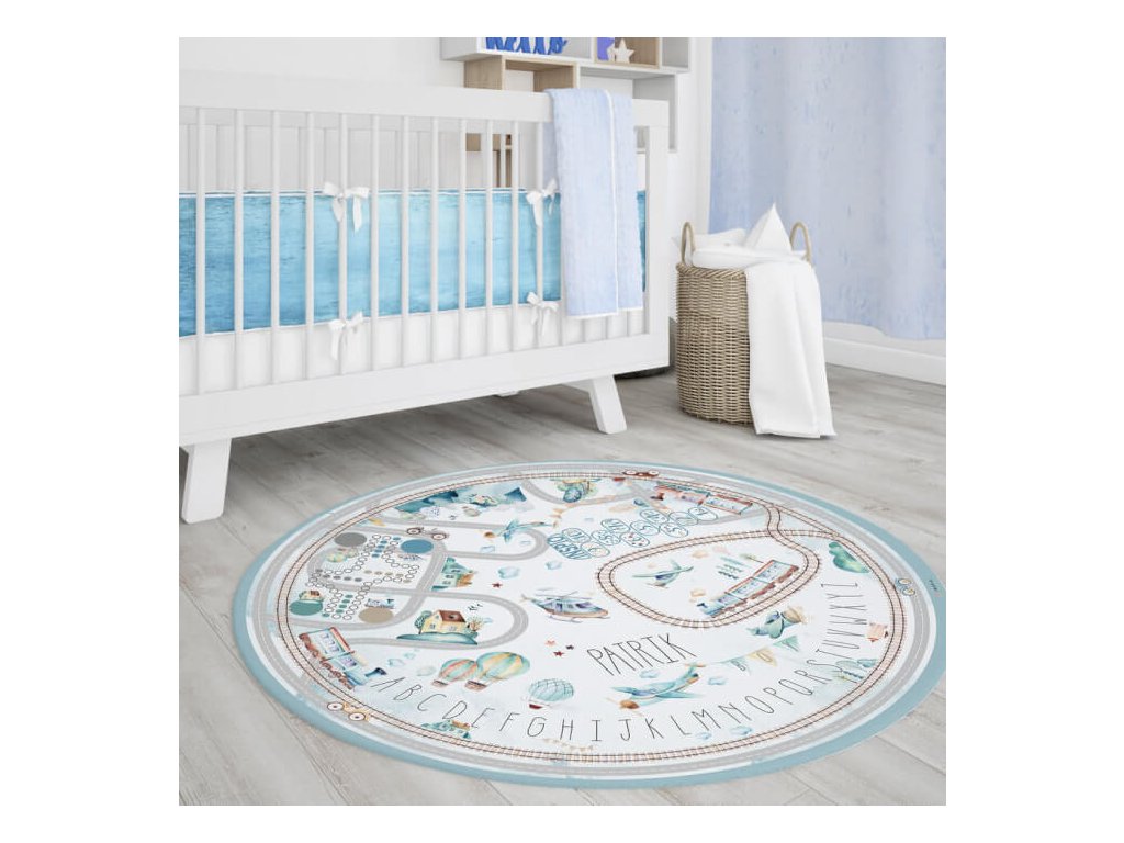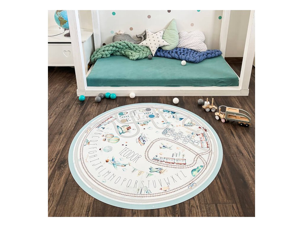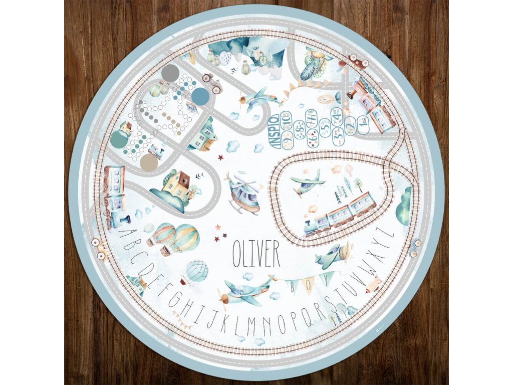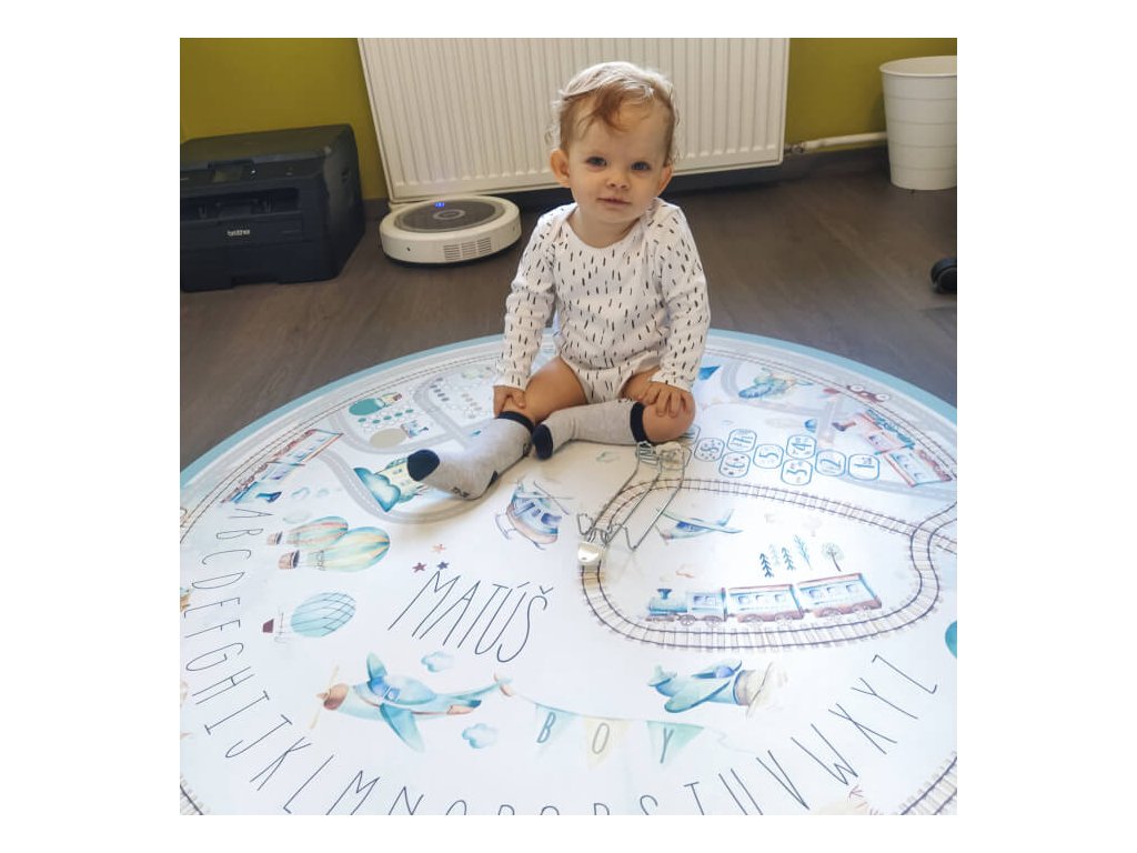 Dětská podložka na hraní pro kluky s cestami - Auta a vláčky s cestami a jménem