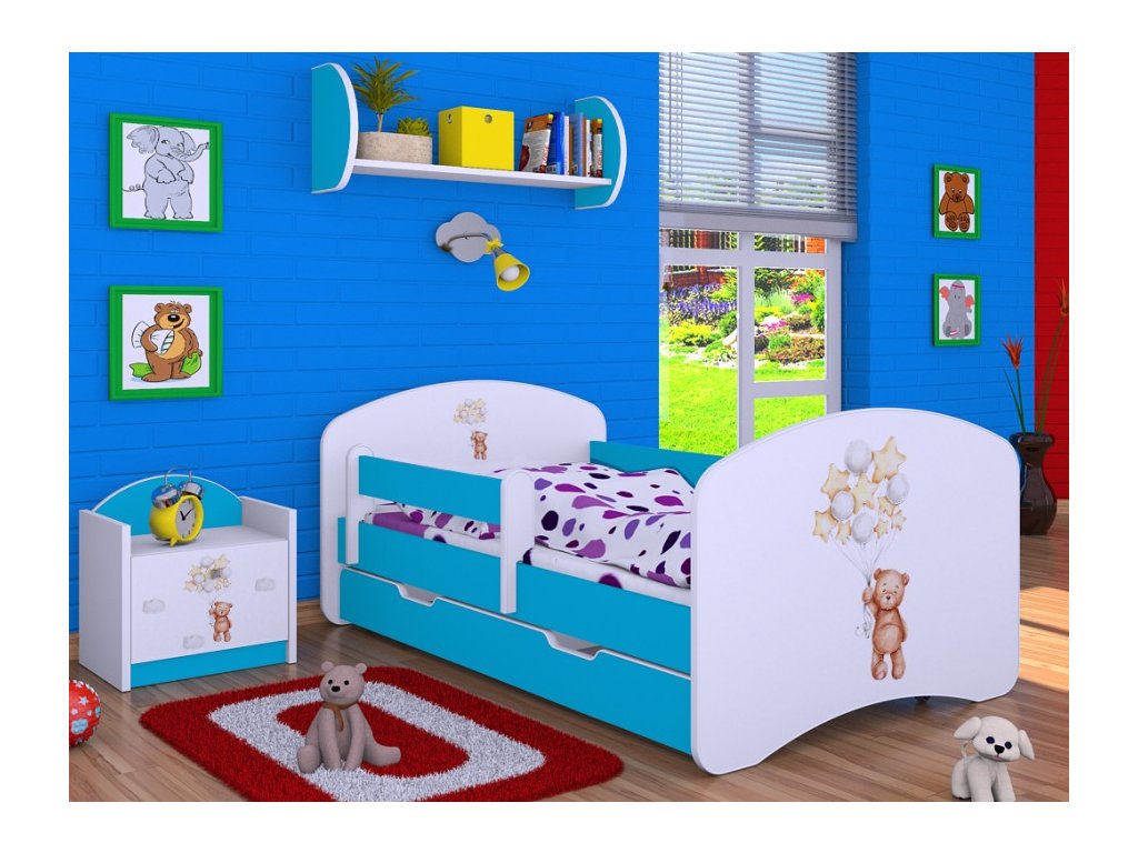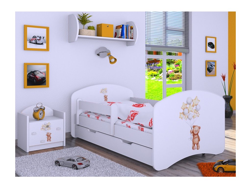 Ve stejném motivu jako budete mít postel lze zakoupit také skříň, box na hračky, regál, knihovnu, noční stolek, psací stůl nebo poličku.