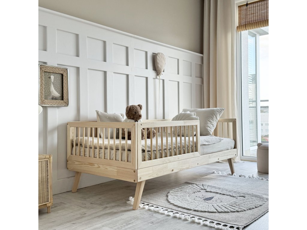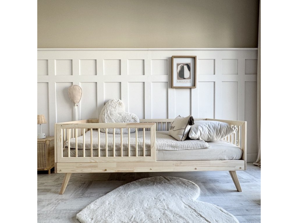 Postel nabízí dětem prostor, kde se cítí bezpečně a zároveň mají možnost kreativní hry. Inspirovaná skandinávským designem, spojuje jednoduchou estetiku s pevností a odolností.
