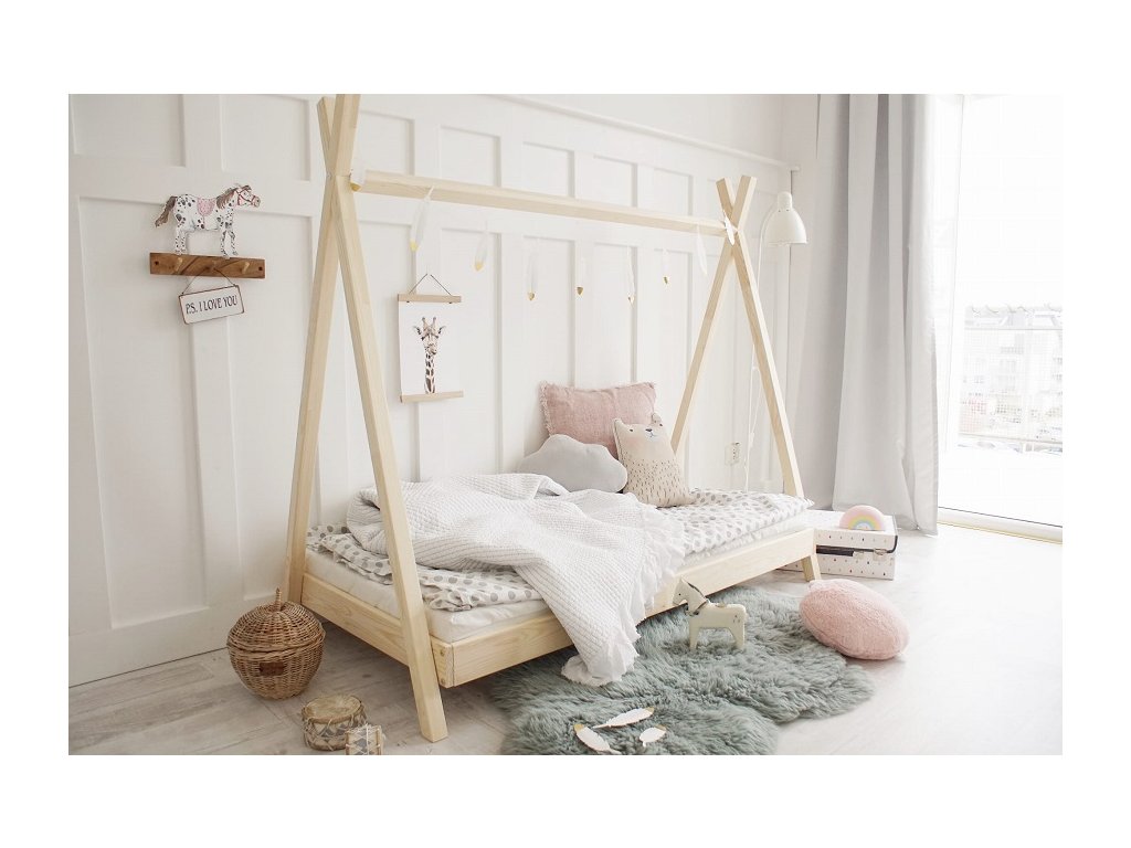Postel Tipi je vyrobena z lepeného borovicového dřeva 1.třídy, jenž je mnohem odolnější než klasický masiv, nepraská a nemá viditelné suky. Její design Vám umožní si postýlku nazdobit dle vlastního vkusu.
