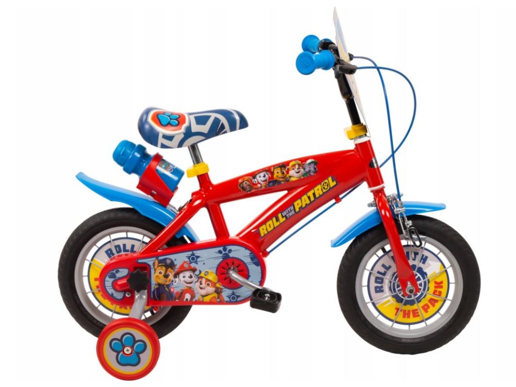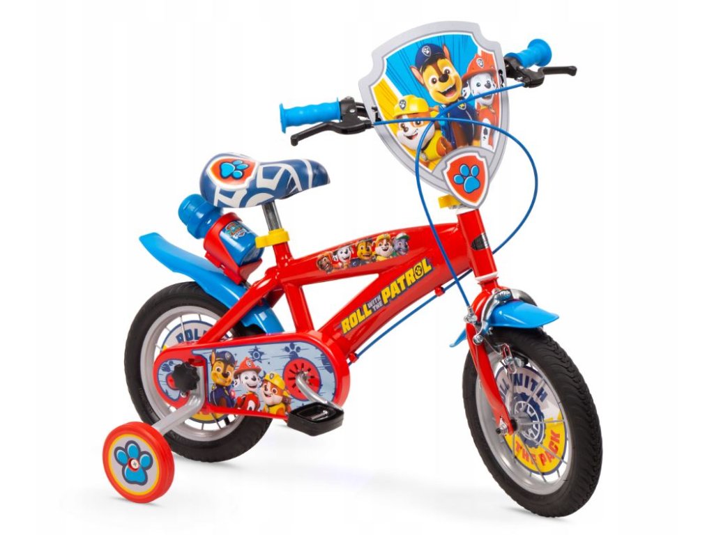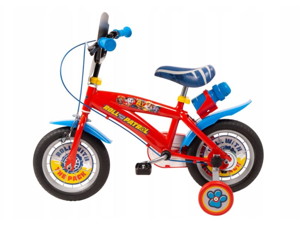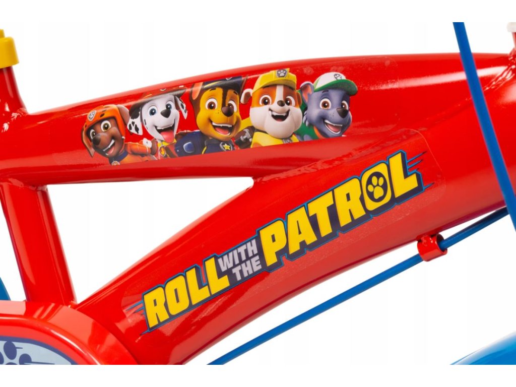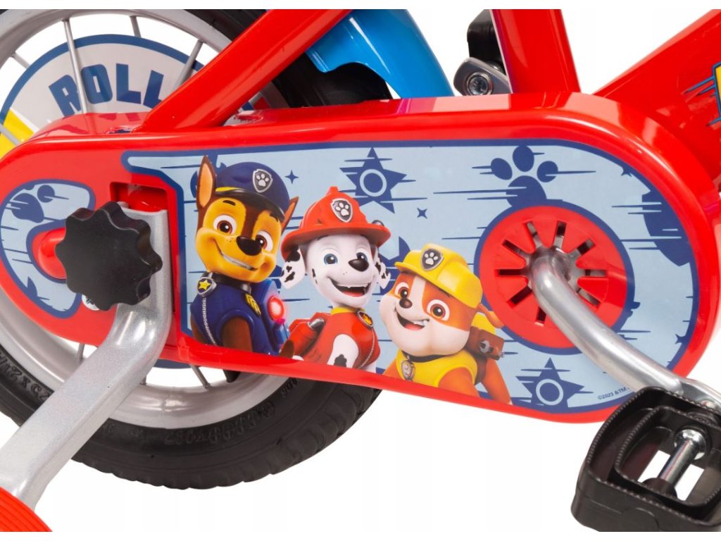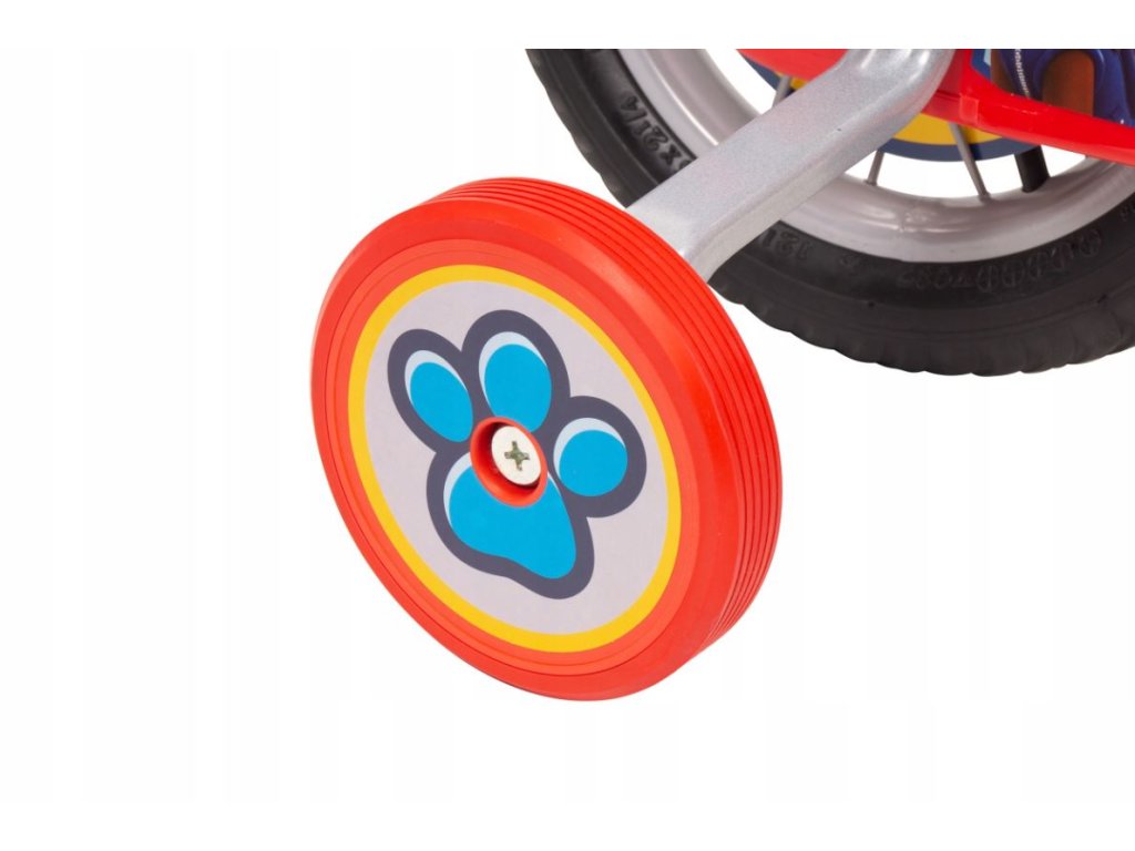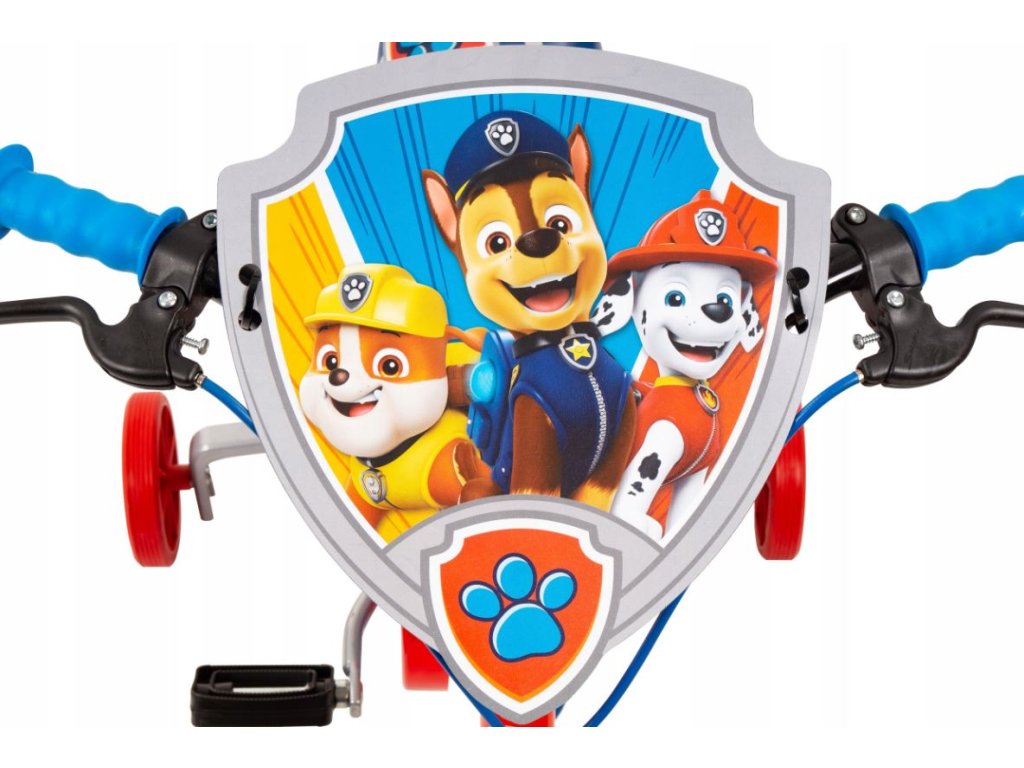 Dětské kolo s motivem Tlapkové patroly, které má 12palcová kola a je určeno pro děti ve věku přibližně 3 až 5 let s výškou 98-112 cm.