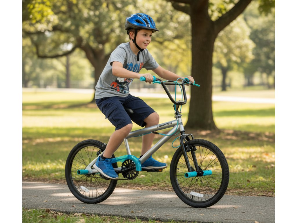 S jednoduchou údržbou a snadnou montáží je kolo Toimsa BMX 20" ideální pro mladé jezdce, kteří chtějí objevovat svět freestyle adrenalinu.