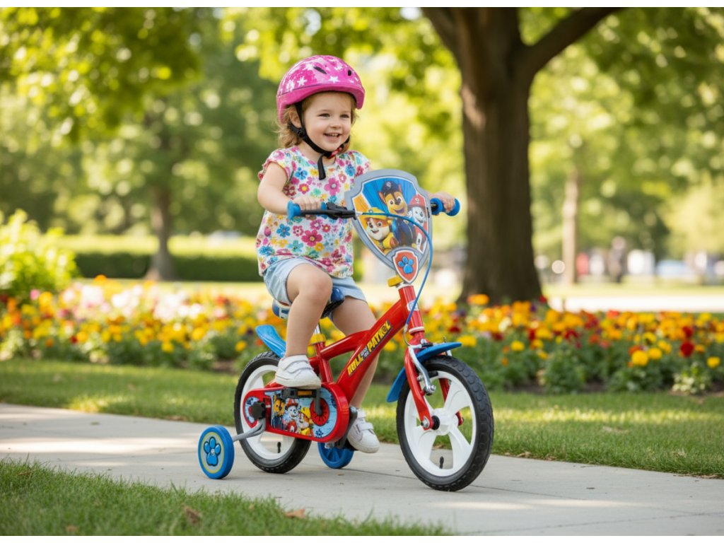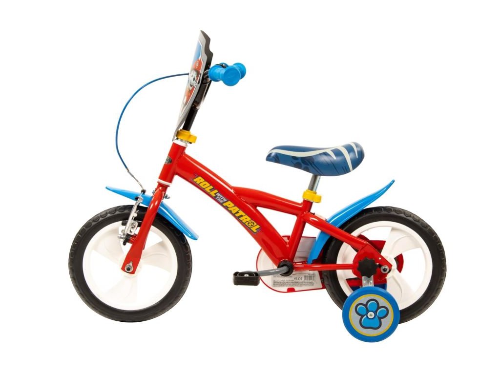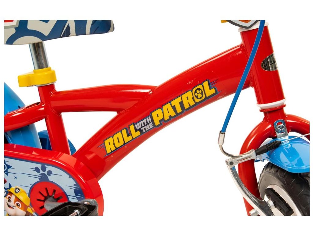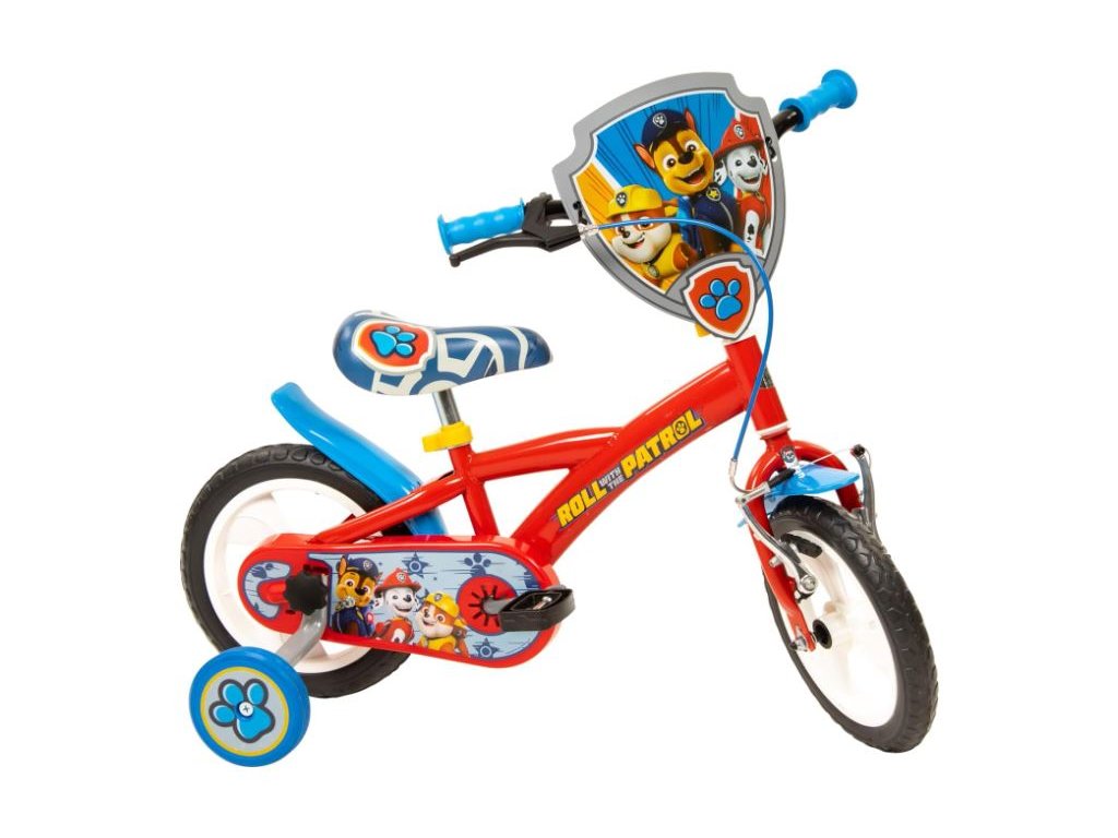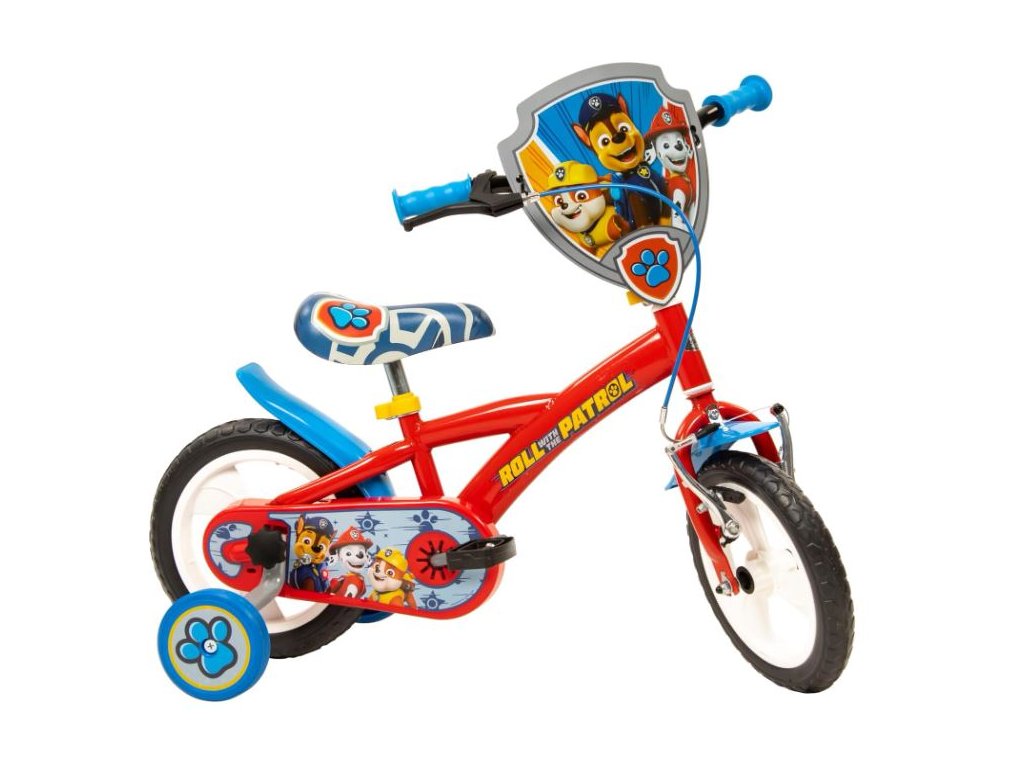 Dětské kolo s motivem Tlapkové patroly, které má 12palcová kola a je určeno pro děti ve věku přibližně 3 až 5 let s výškou 98-112 cm.