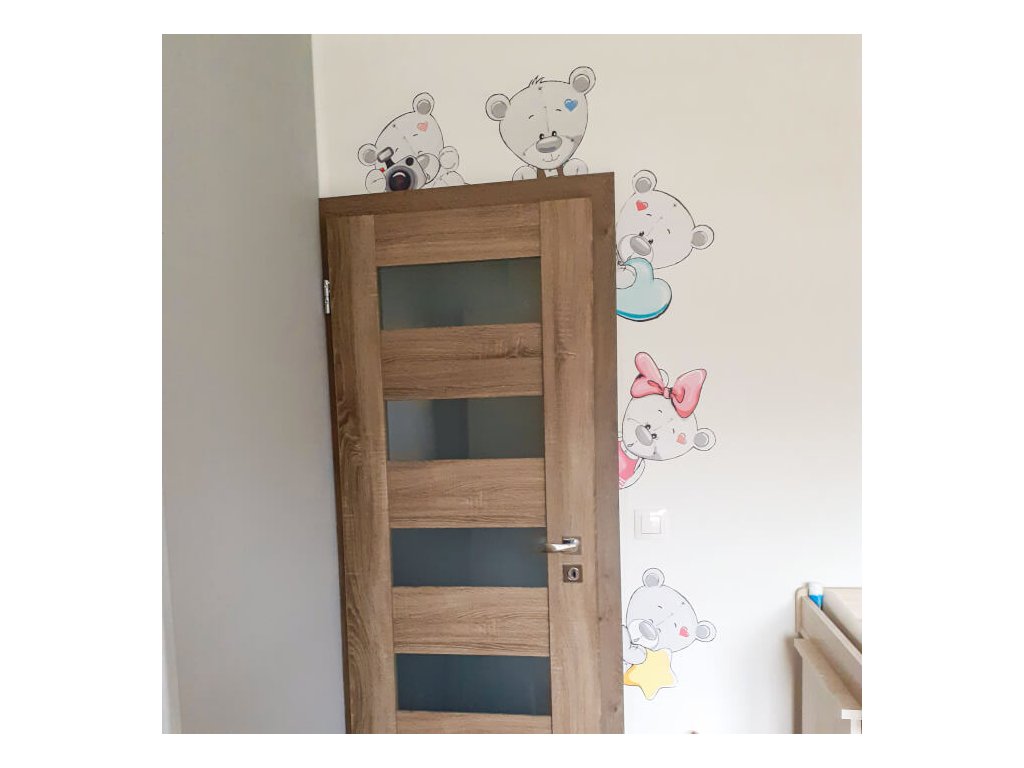 Dětské samolepky na zeď kolem dveří - Šedí plyšoví medvídci II N.1 – VPRAVO OD DVEŘÍ