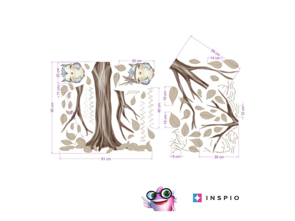 Dětské samolepky na zeď - Samolepka stromu v přírodních barvách