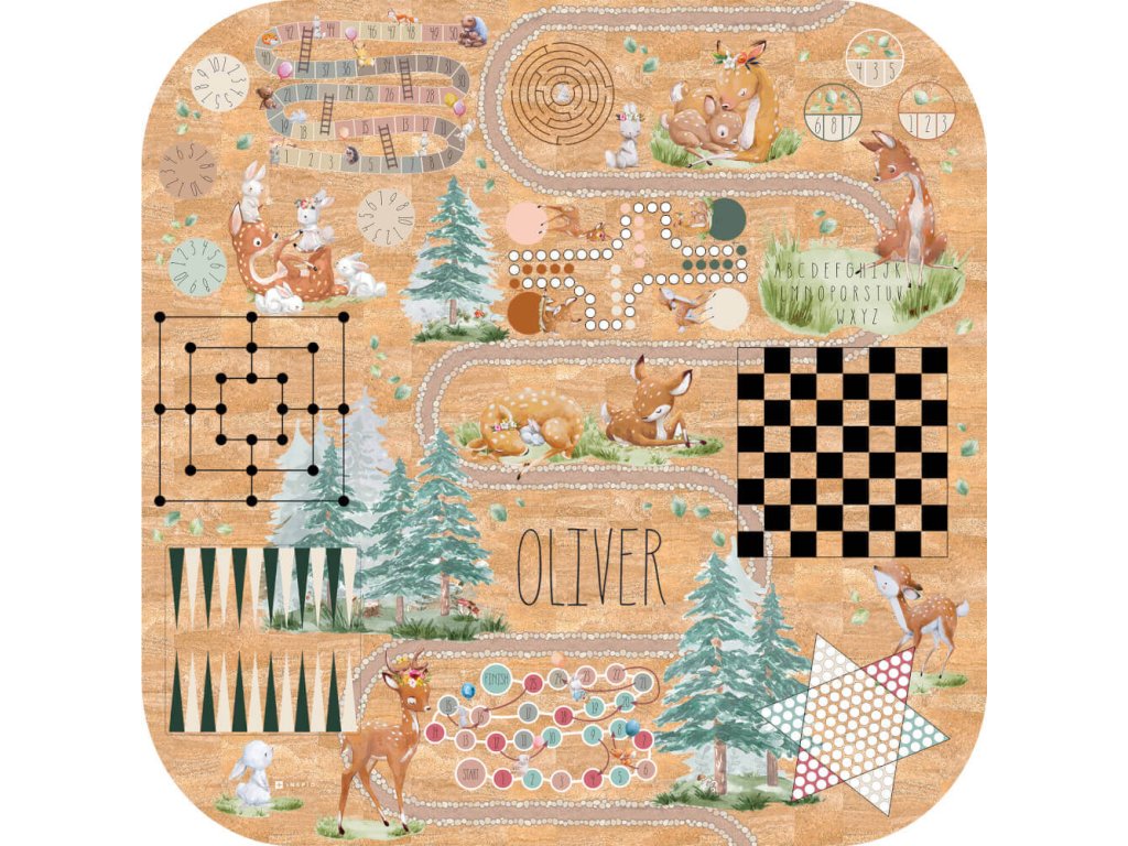 Hravý a praktický koberec plný her je designovým doplňkem do dětského pokoje. Obzvláště oblíbený bude u milovníků kolekce Forest – Lesní svět.
