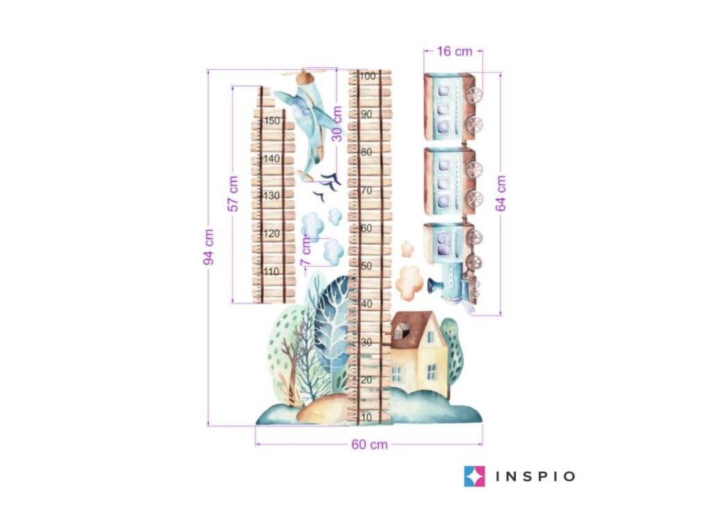 Dětský metr INSPIO pro kluky je textilní omyvatelná samolepka na zeď. V oblíbeném provedení s vláčkem a letadlem skvěle zapadne do každého pokojíčku.Doplňkové parametry