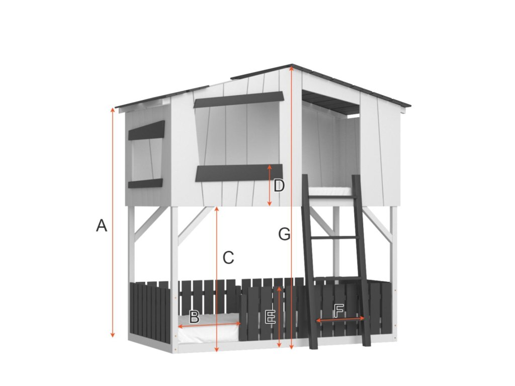 Materiál na výrobu postele je borovicové dřevo, okna, střecha a zábrana je MDF deska.