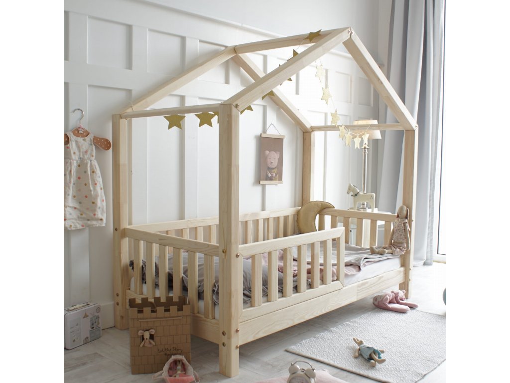 Domečková postel HouseBed se zábranou 200x90 cm - přírodní