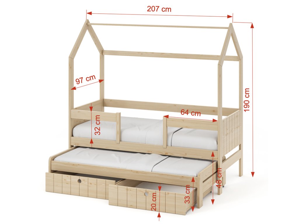 Proměňte dětský pokoj ve stylový a praktický prostor s domečkovou postelí z kvalitního borovicového dřeva.