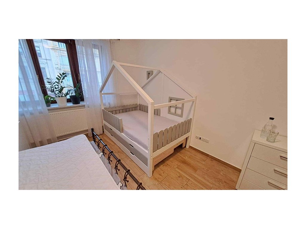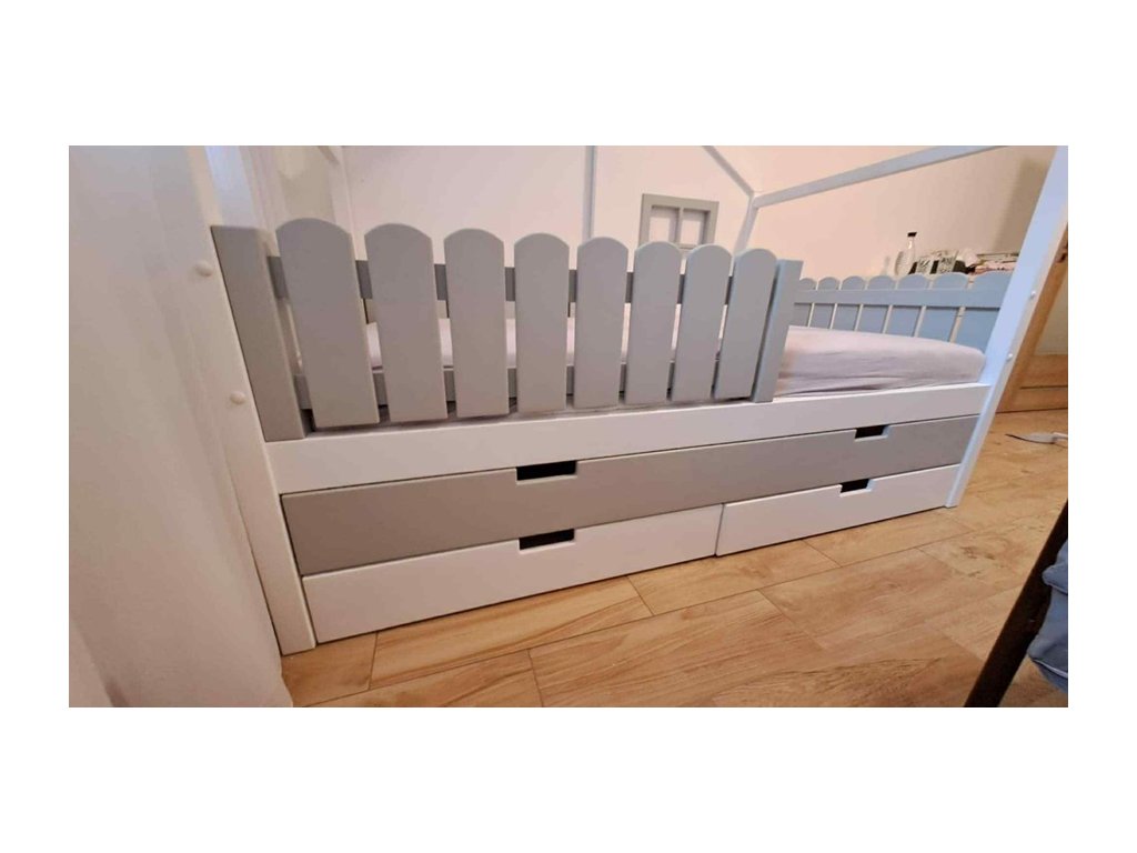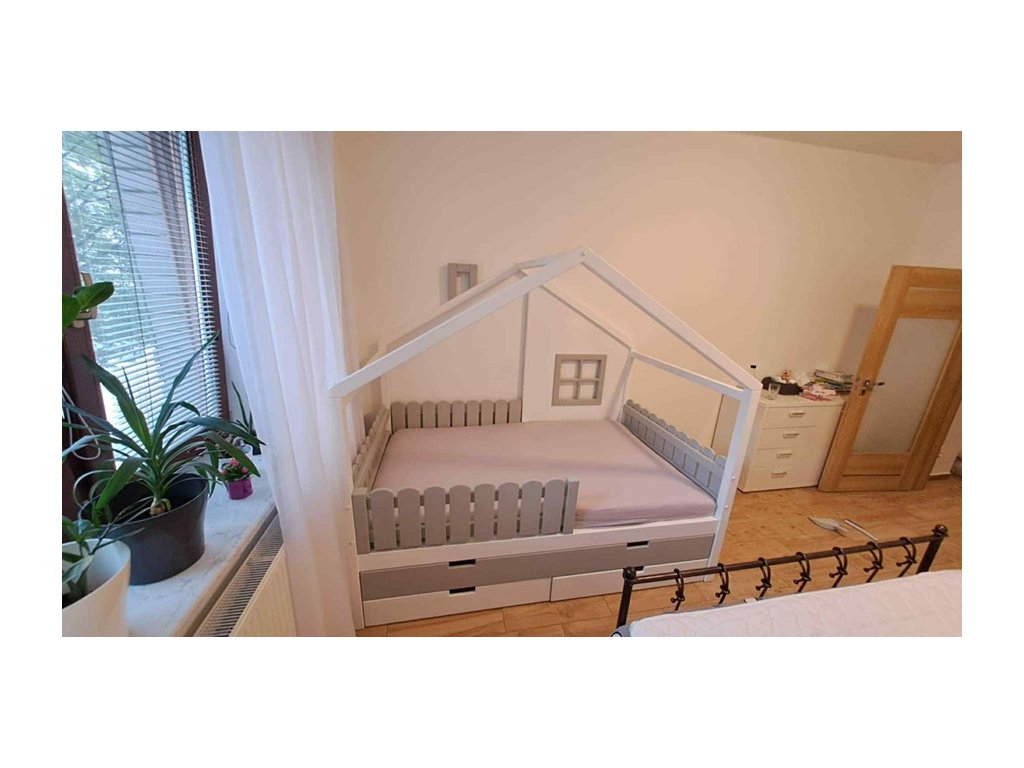 Domečková postel s šuplíkem a přistýlkou Miška II - česká výroba