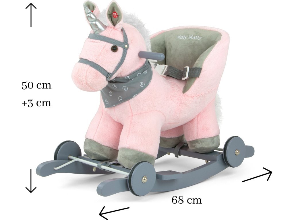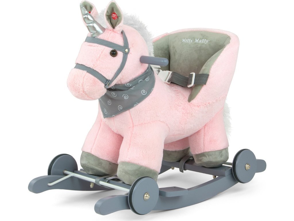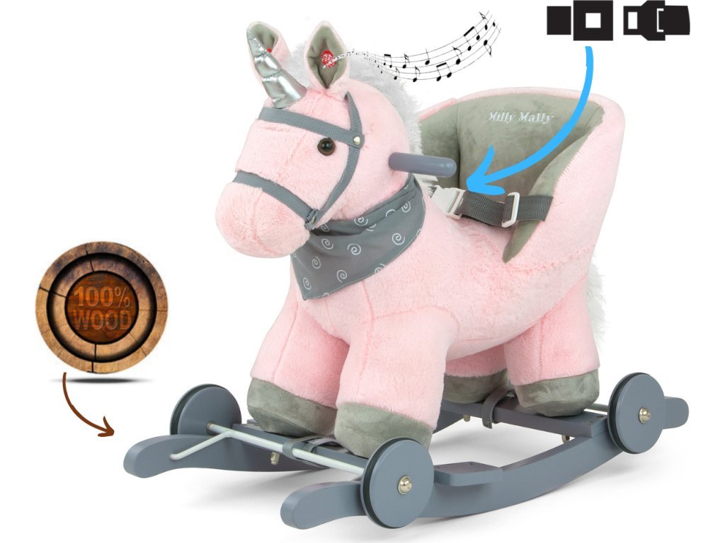 Houpací koník s melodií a kolečky Milly Mally Polly růžový