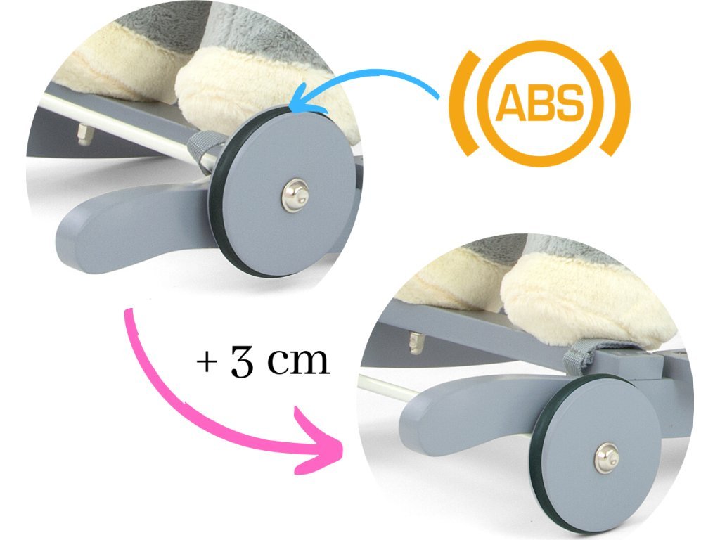 Měkoučký houpací koník Polly byl navržen pro nejmladší děti, pro které jsou tradiční houpací koně příliš velké. Pohodlné a tvarované sedadlo ve tvaru křesla a nastavitelné popruhy poskytují pohodlí a bezpečnost během bezstarostného houpání vašeho dítěte. Opěrky pro nohy na lištách a rukojeti ještě více pomáhají udržet rovnováhu. Překlopením jednoduchého mechanismu na lištách vysunete kolečka, čímž ve vteřině změníte houpací hračku v jezdícího koníka. Houpací lišty lze jednoduše odšroubovat. Po stisknutí ouška koník vesele zařechtá, po stisknutí druhého vydá zvuk klusajícího koně. Baterie se vkládají do poudra umístěného na bříšku.