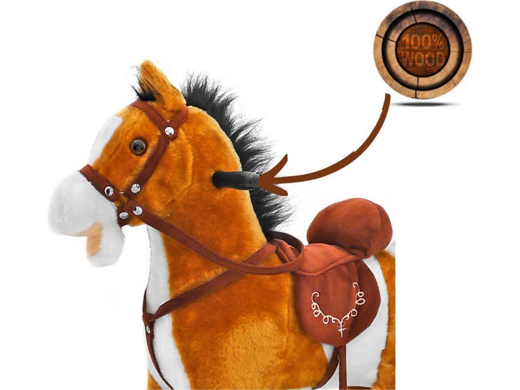 - koník má sedlo s třmeny, uzdu a dřevěné rukojeti