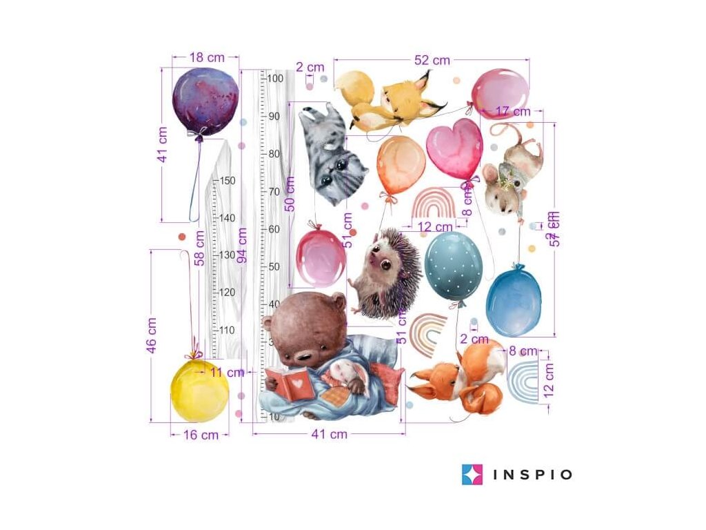 Metr na zeď pro děti - Létající zvířátka a balóny