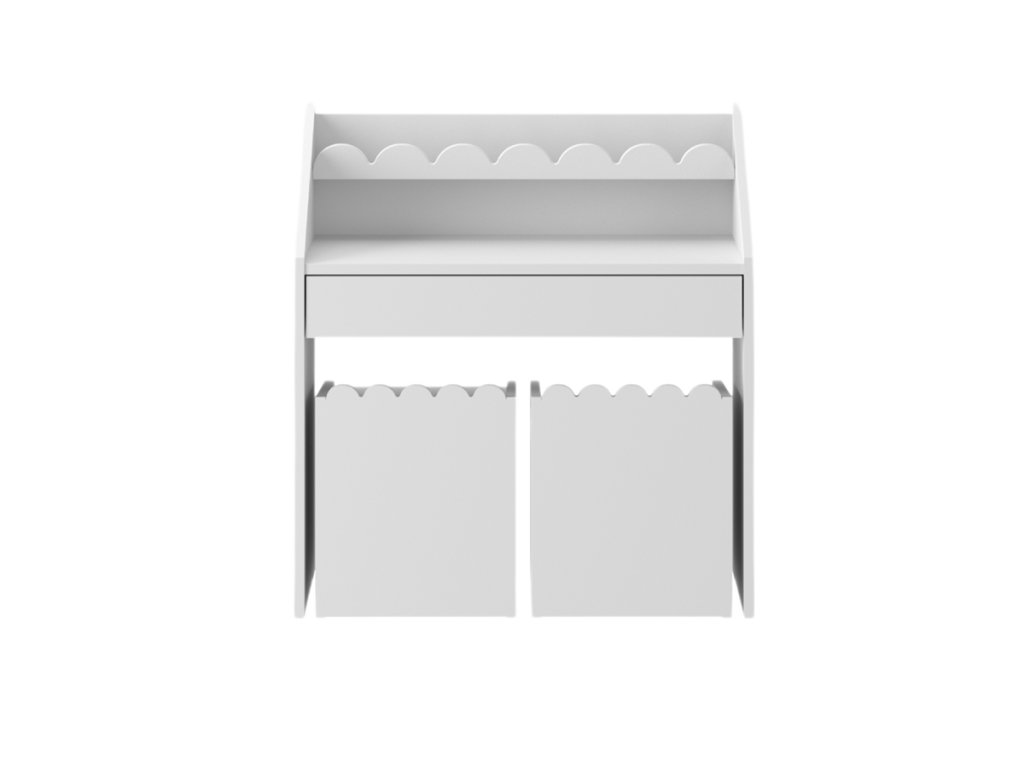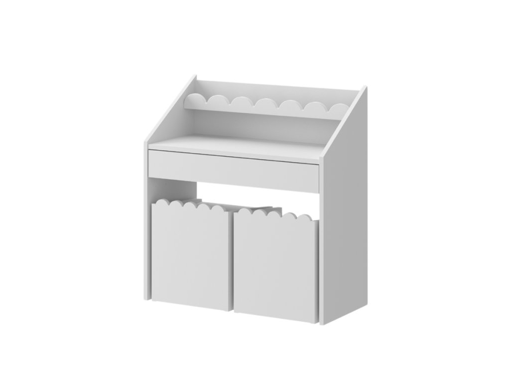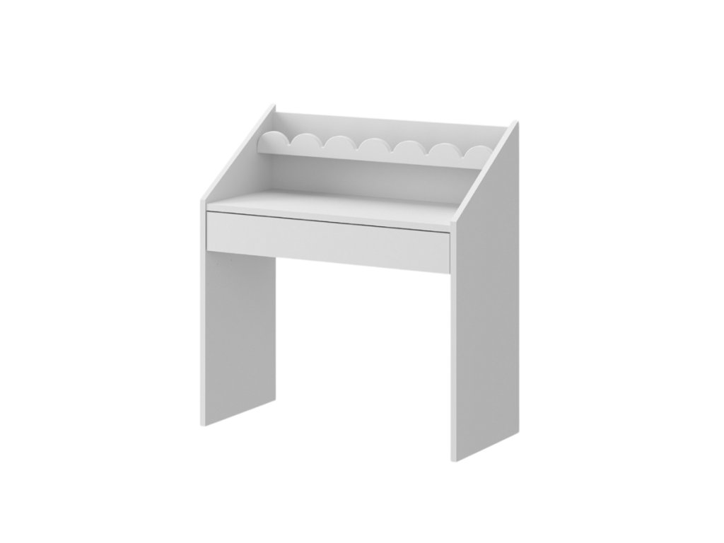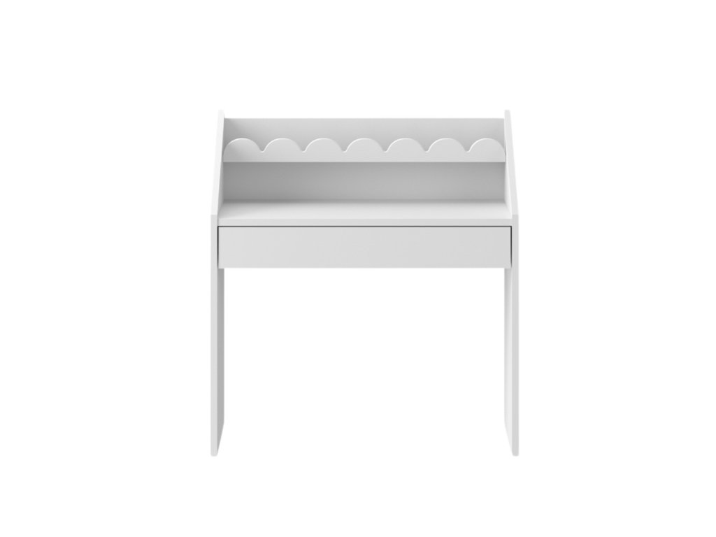 Stůl má úsporné rozměry, takže se perfektně hodí i do malých dětských pokojíčků. Součástí je praktická zásuvka a otevřená polička, které pomáhají udržet přehled a pořádek ve všech drobnostech, pastelkách či knihách.