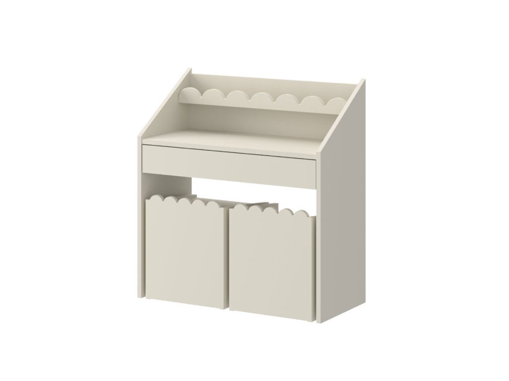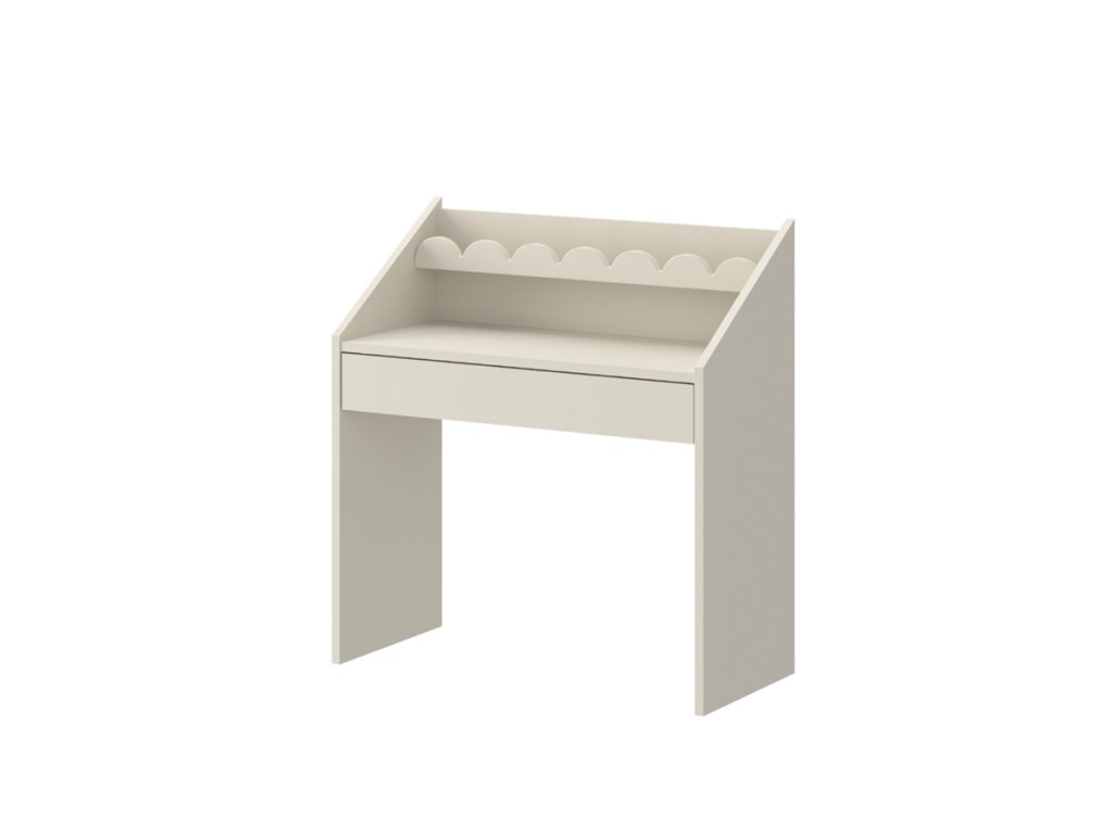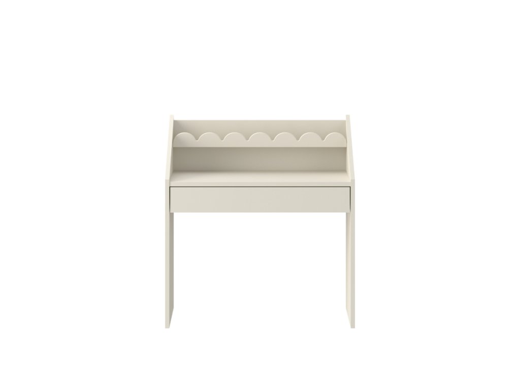 Stůl má úsporné rozměry, takže se perfektně hodí i do malých dětských pokojíčků. Součástí je praktická zásuvka a otevřená polička, které pomáhají udržet přehled a pořádek ve všech drobnostech, pastelkách či knihách.