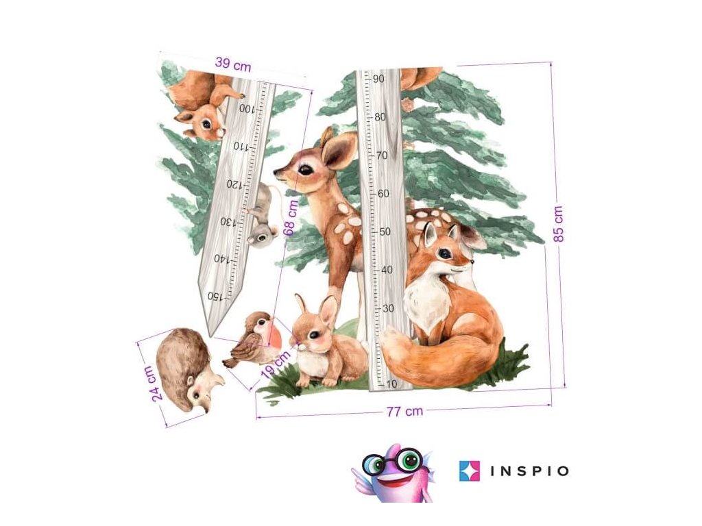 Nálepka metr na zeď - Forest a zvířátka z lesa
