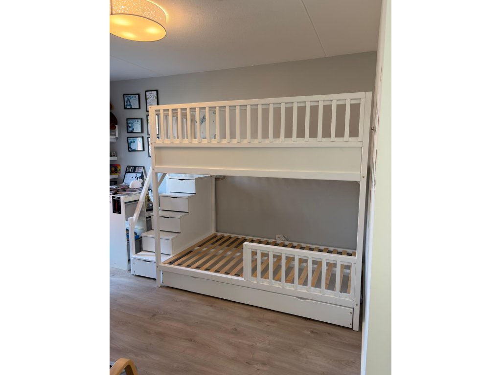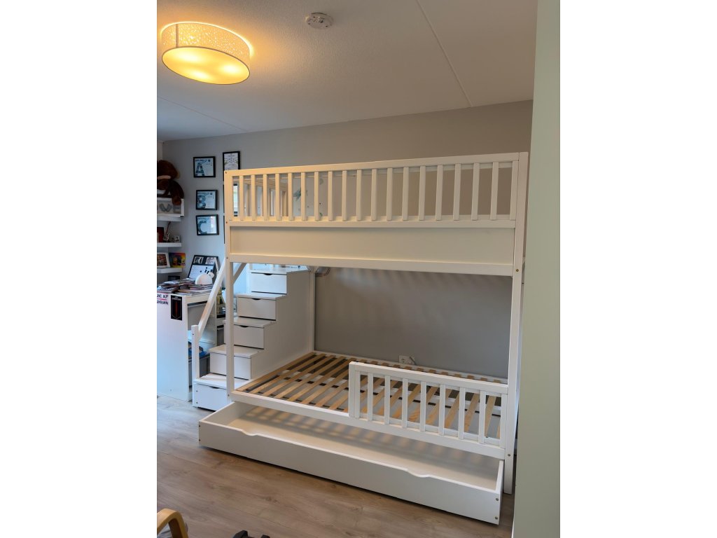 Patrová postel spojuje bezpečnost, praktičnost a stylový vzhled, ideální pro dětský pokoj, který roste s vašimi dětmi.