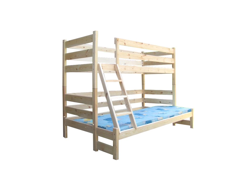 Tato postel má rozměr matrace na horní posteli 200x90 cm / spodní matrace 120x200 cm.
