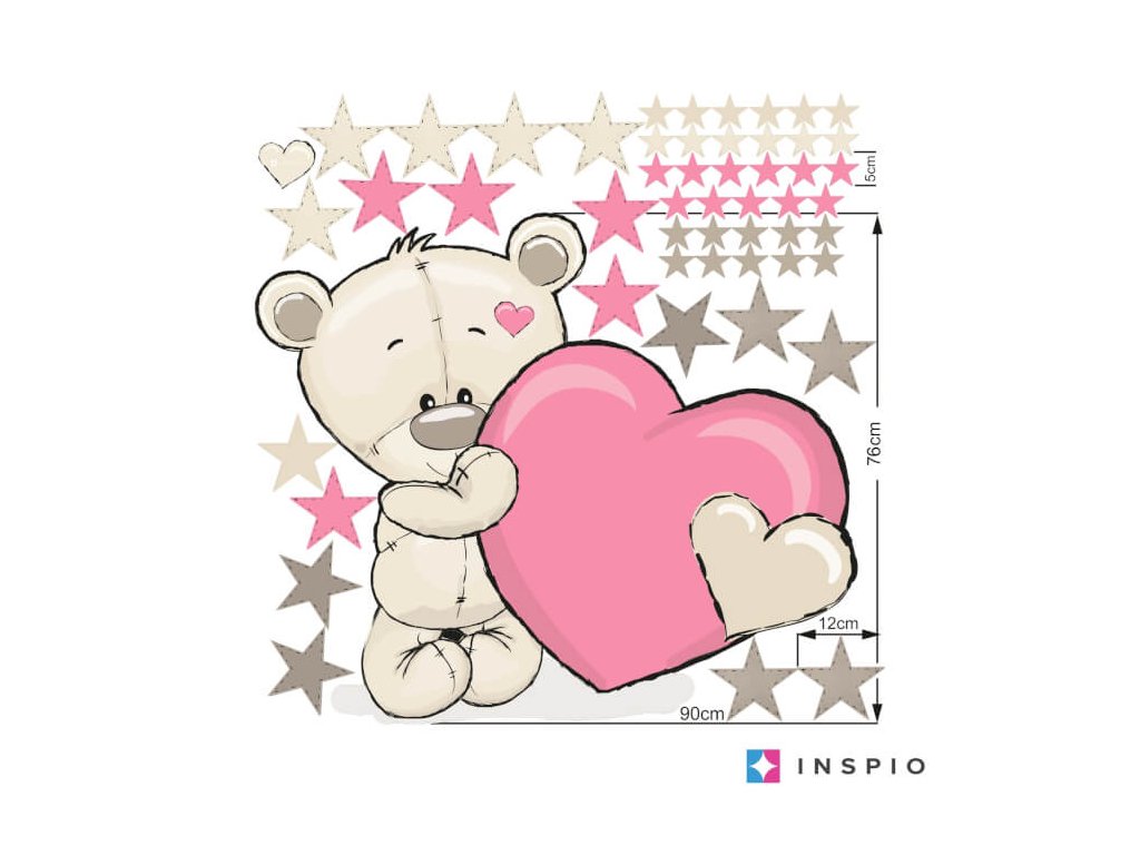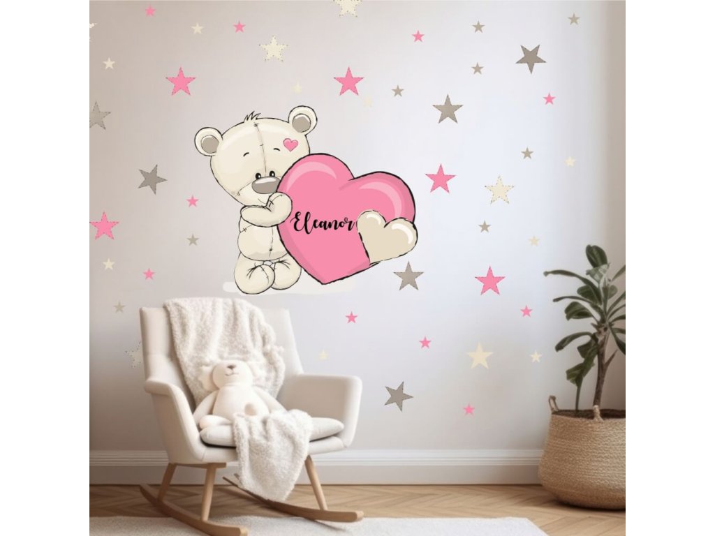 Přelepitelná samolepka do pokoje pro miminko - Medvídek se jménem a srdíčkem