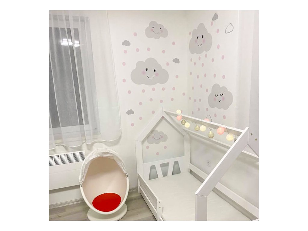 Samolepka na zeď - Obláčky s tečkami