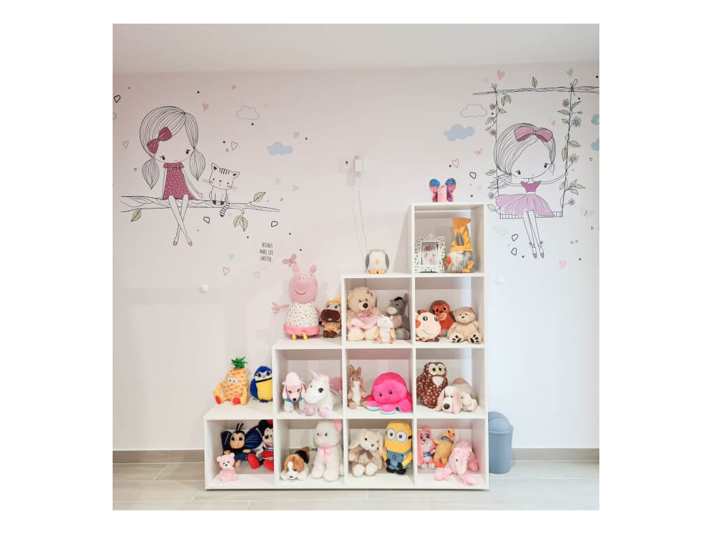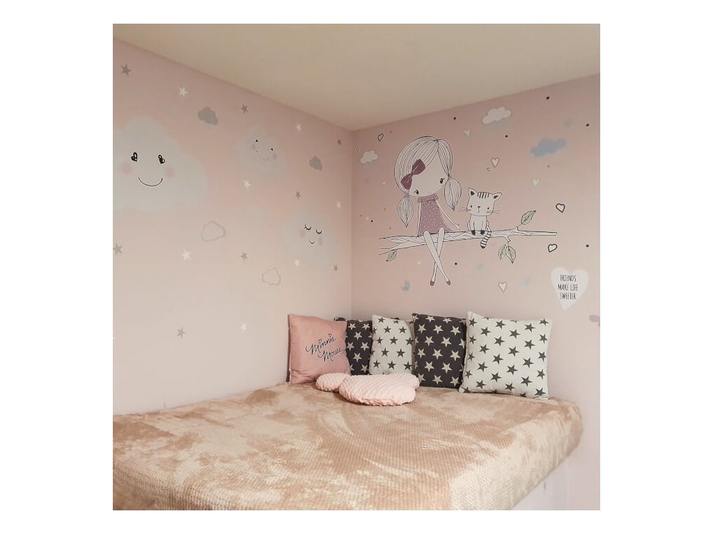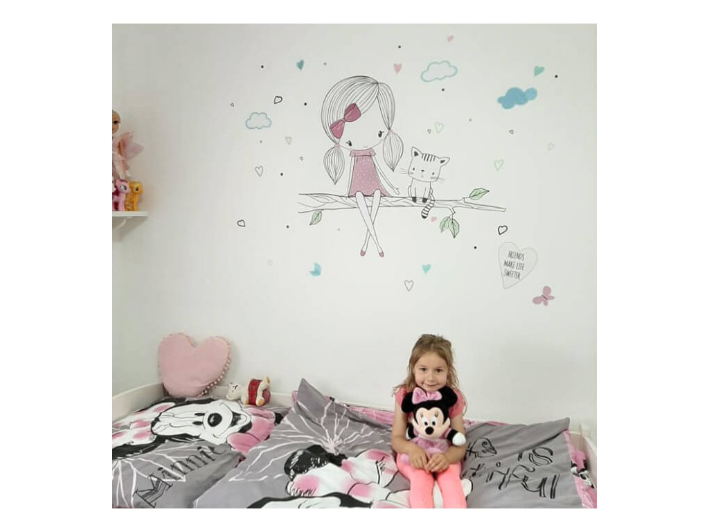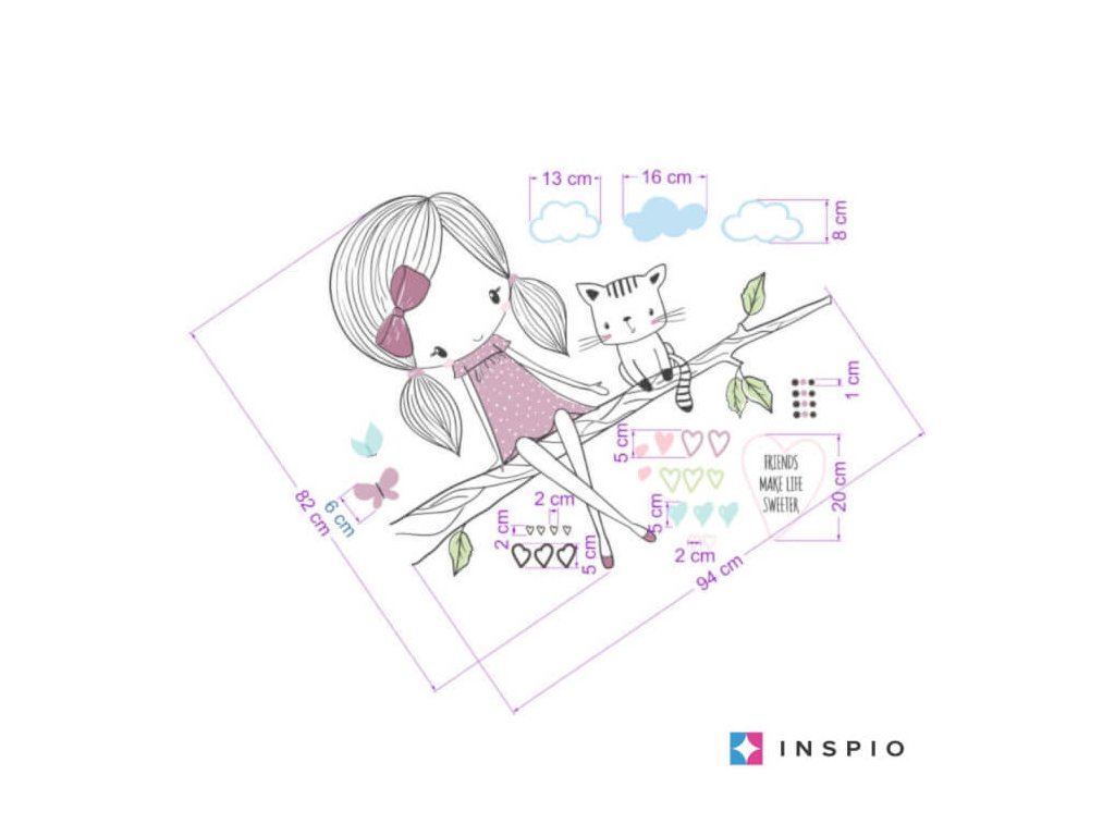 Samolepky do dětského pokoje - INSPIO víla na větvi s kočičkou ve fialovém provedení