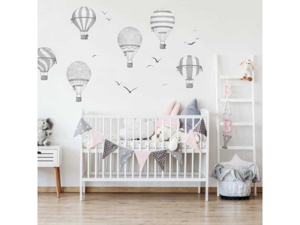 Samolepka horkovzdušný balón dekorace na zeď INSPIO v šedé barvě a skandinávském stylu vytvoří v pokojíčku dokonalou atmosféru.Doplňkové parametry