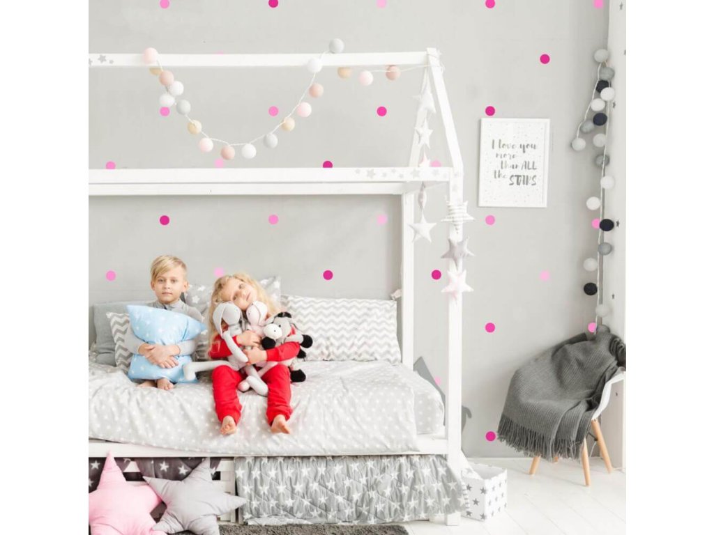 Tečky na zeď v růžových barvách - tečky a kuličky