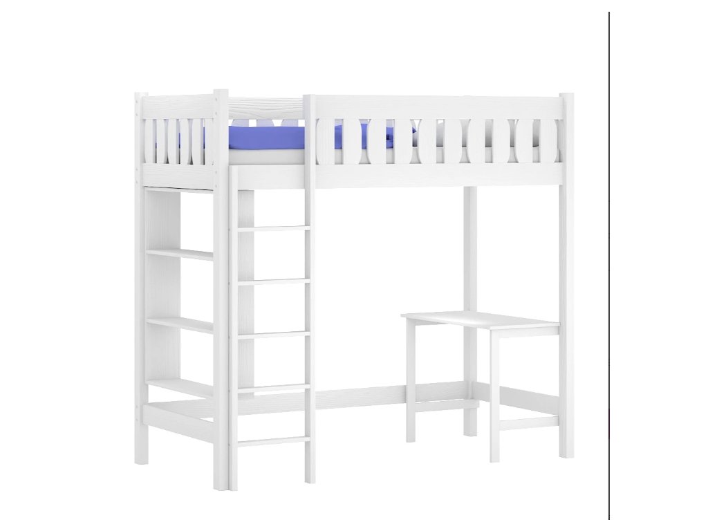 Součástí postele je i praktický stůl, který maximálně využívá prostor a poskytuje ideální místo k práci, hraní nebo odpočinku.