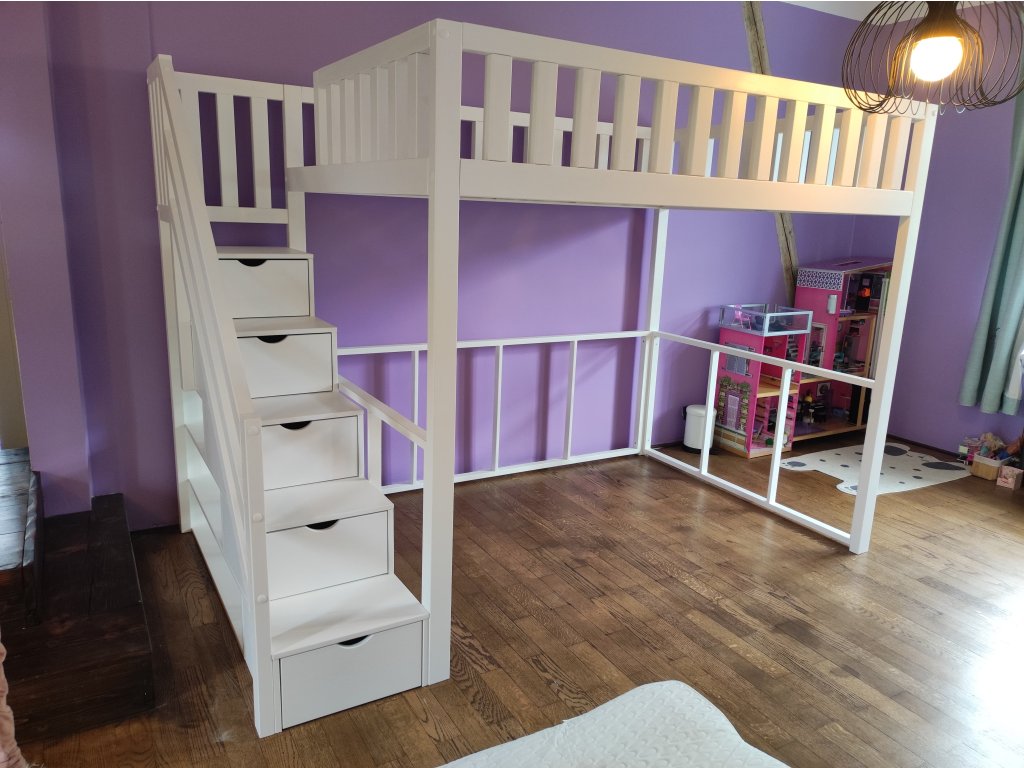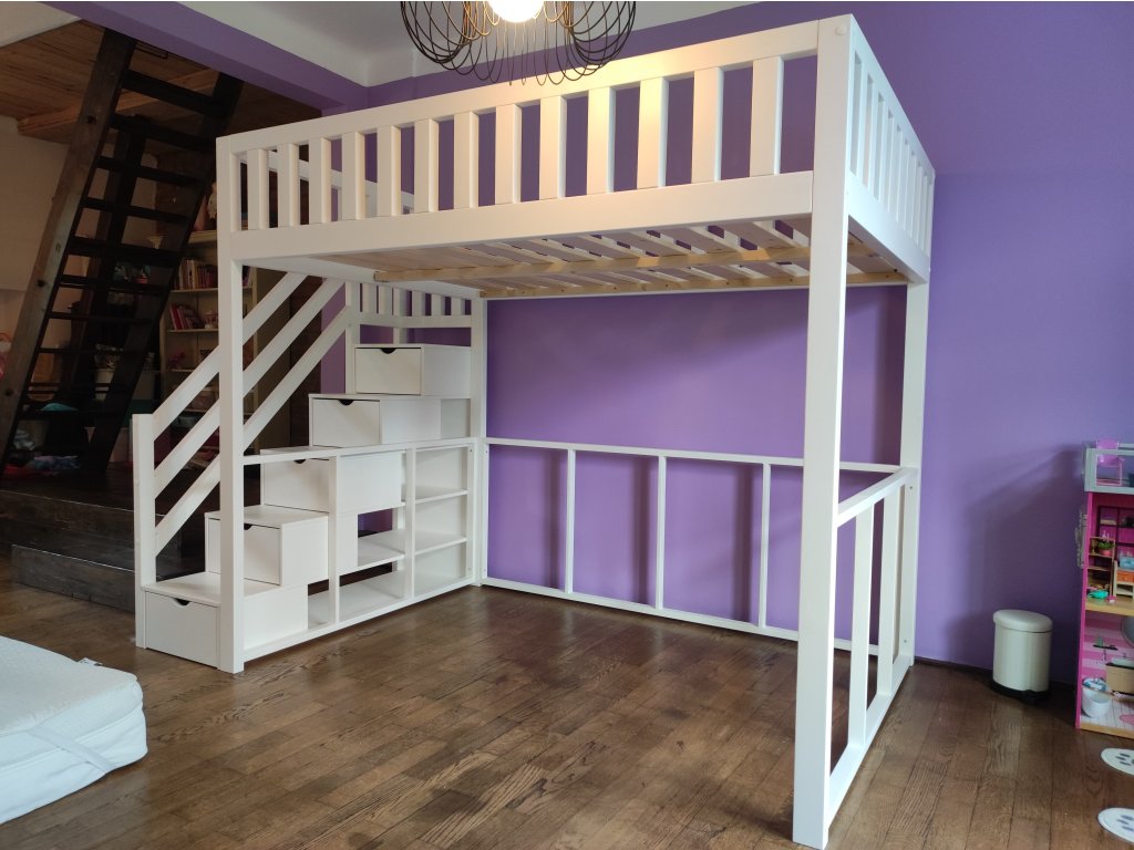 Vyvýšené postele se schody jsou velice oblíbené z důvodu ušetření místa v pokoji.